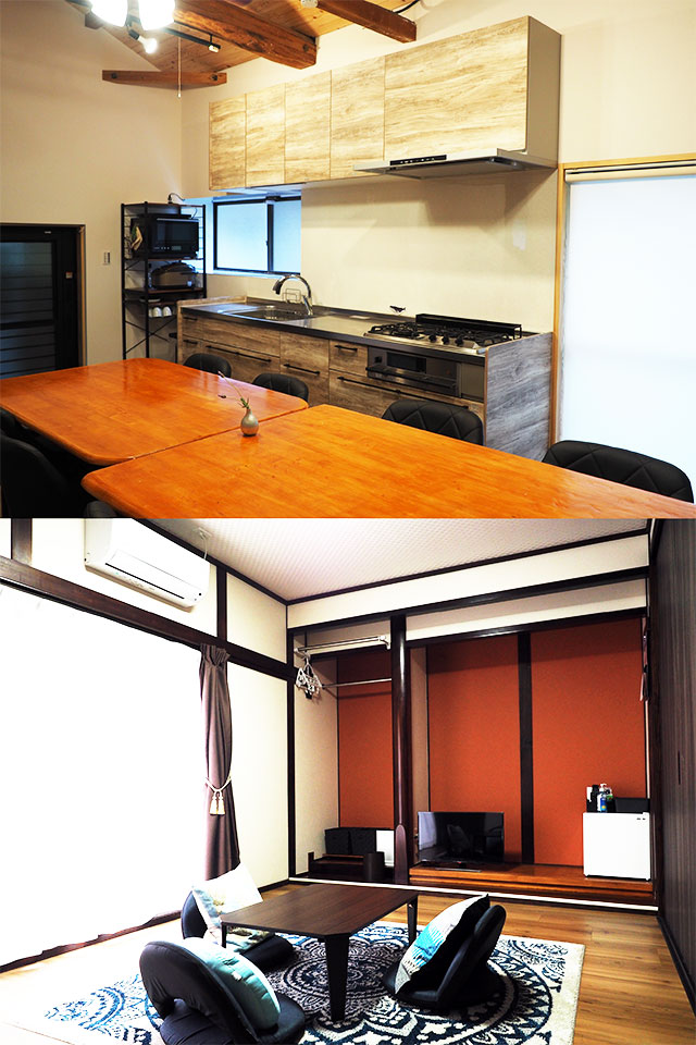 宿のメインとなるダイニングキッチンは衛生的な設備とゆったりとした空間です。